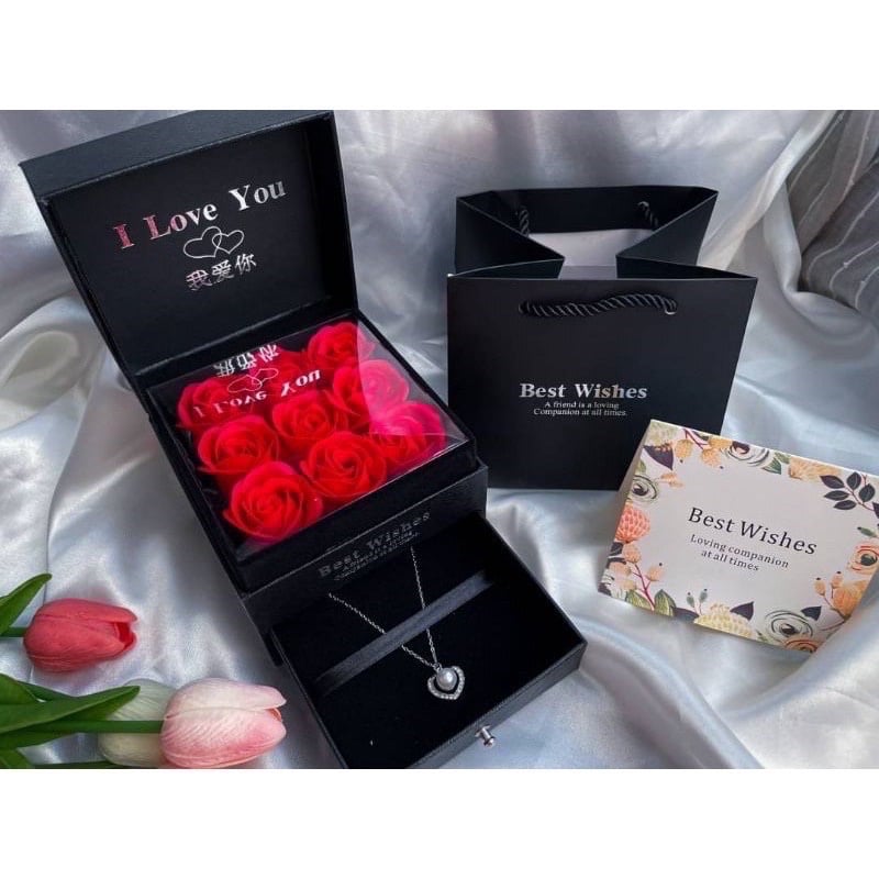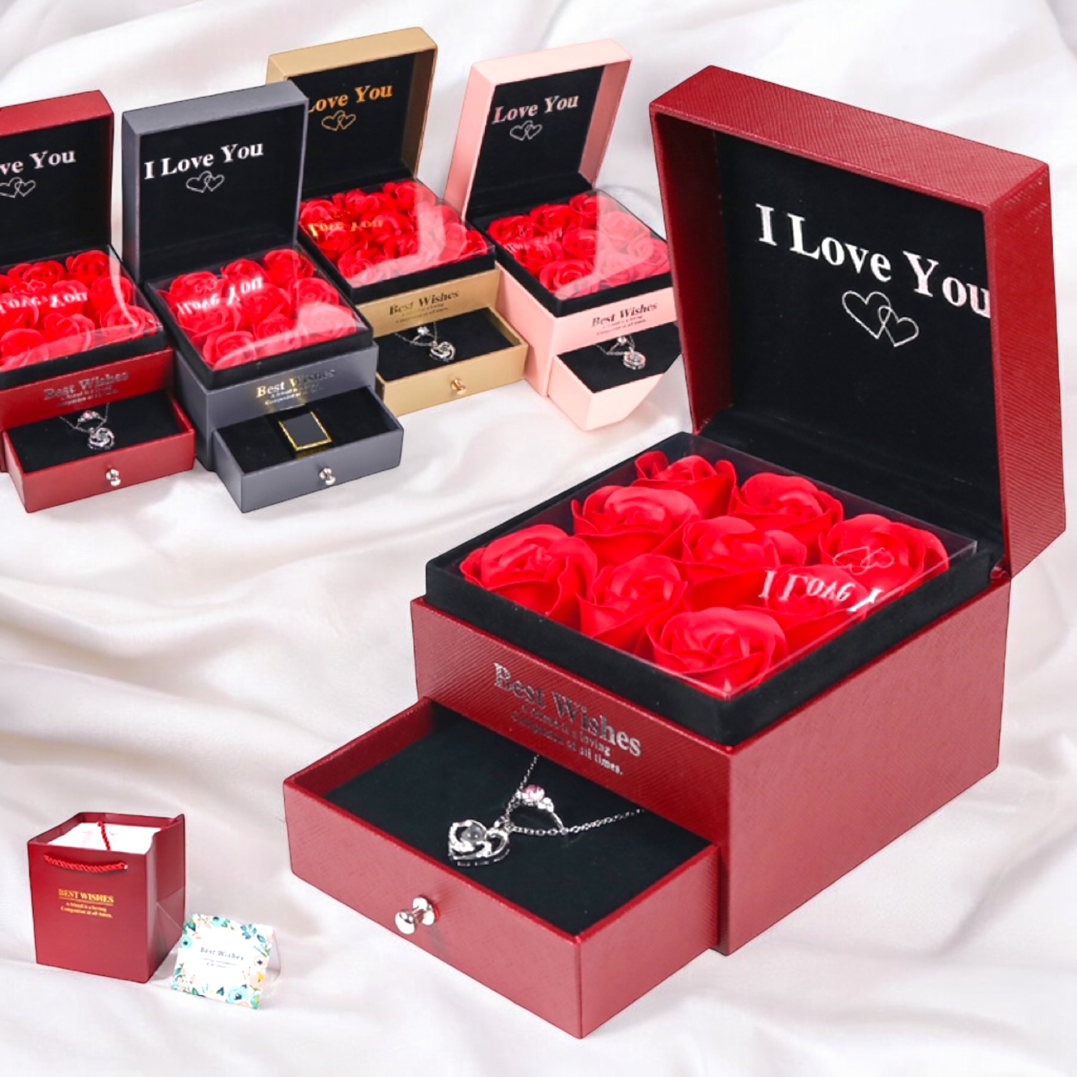 LoveBox este o cutiuță de cadou elegantă, conținând 9 trandafiri din săpun și un sertar de depozitare pentru bijuterii, care îi va aduce zâmbete pe buze persoanei iubite sau dragi ție! Cutia conține flori din săpun atent selecționate care vor rezista o veșnicie pentru persoana dragă!