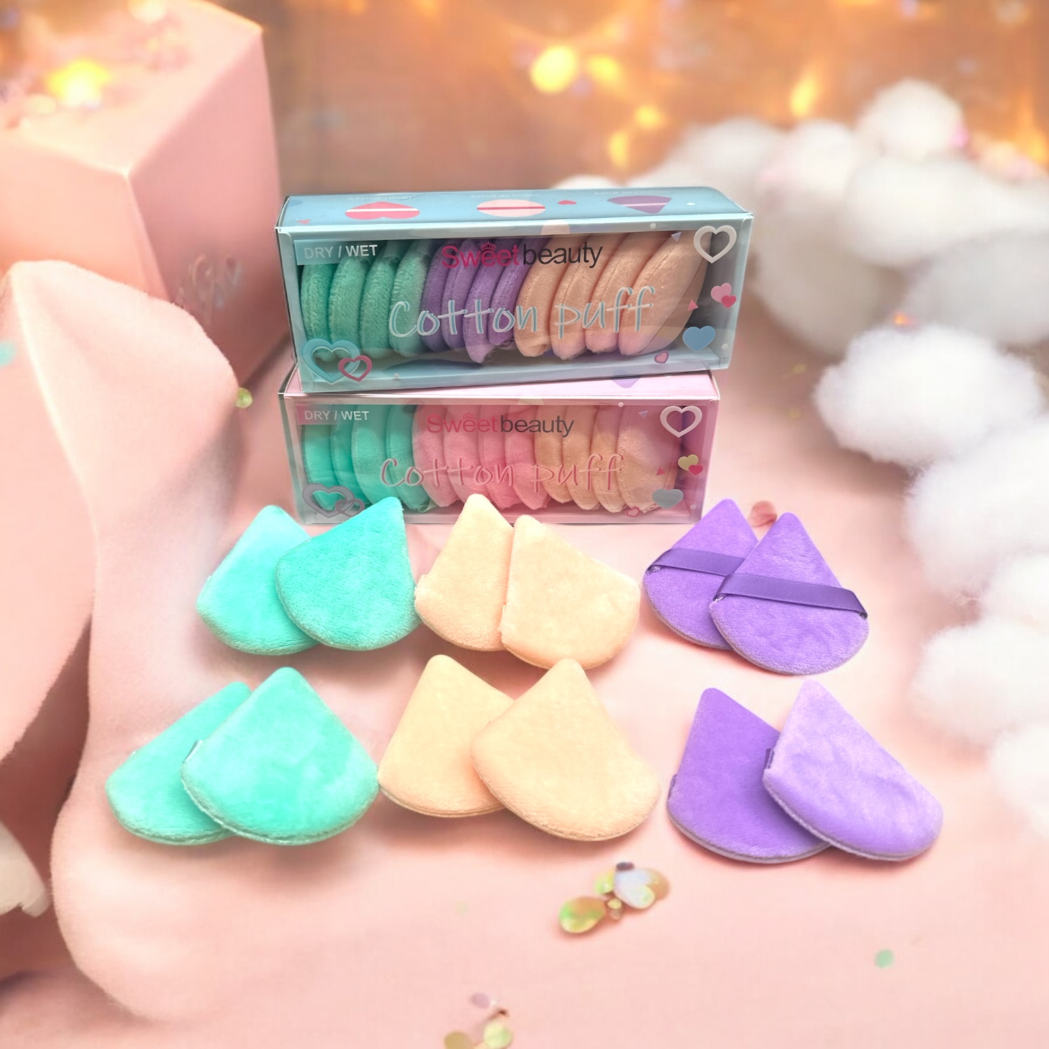 🌸 Sweet Beauty – Set 12 Bureței Triunghiulari Catifelați „Cotton Puff”