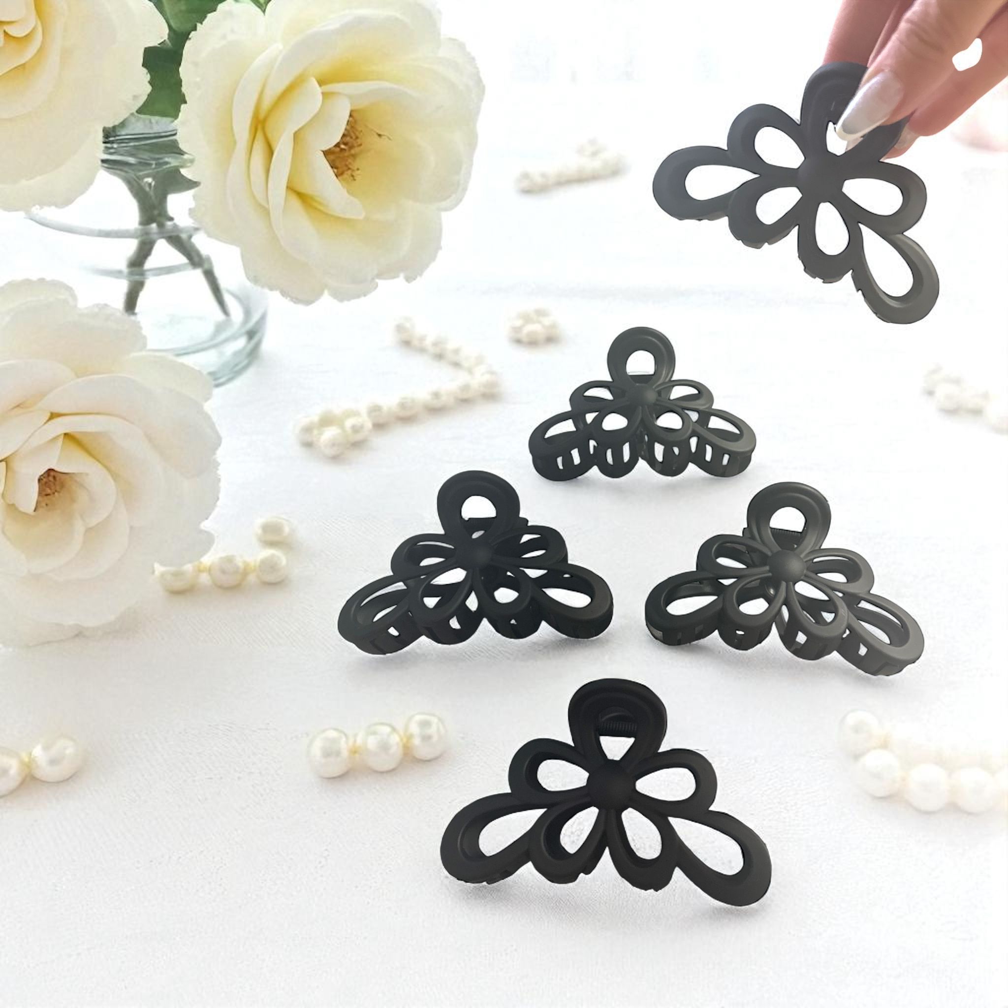 Prindere Sigură și Discretă: Mecanismul de prindere este eficient pentru a menține părul fixat, în timp ce dimensiunea mică îi face potriviți pentru a nu încărca vizual coafura.