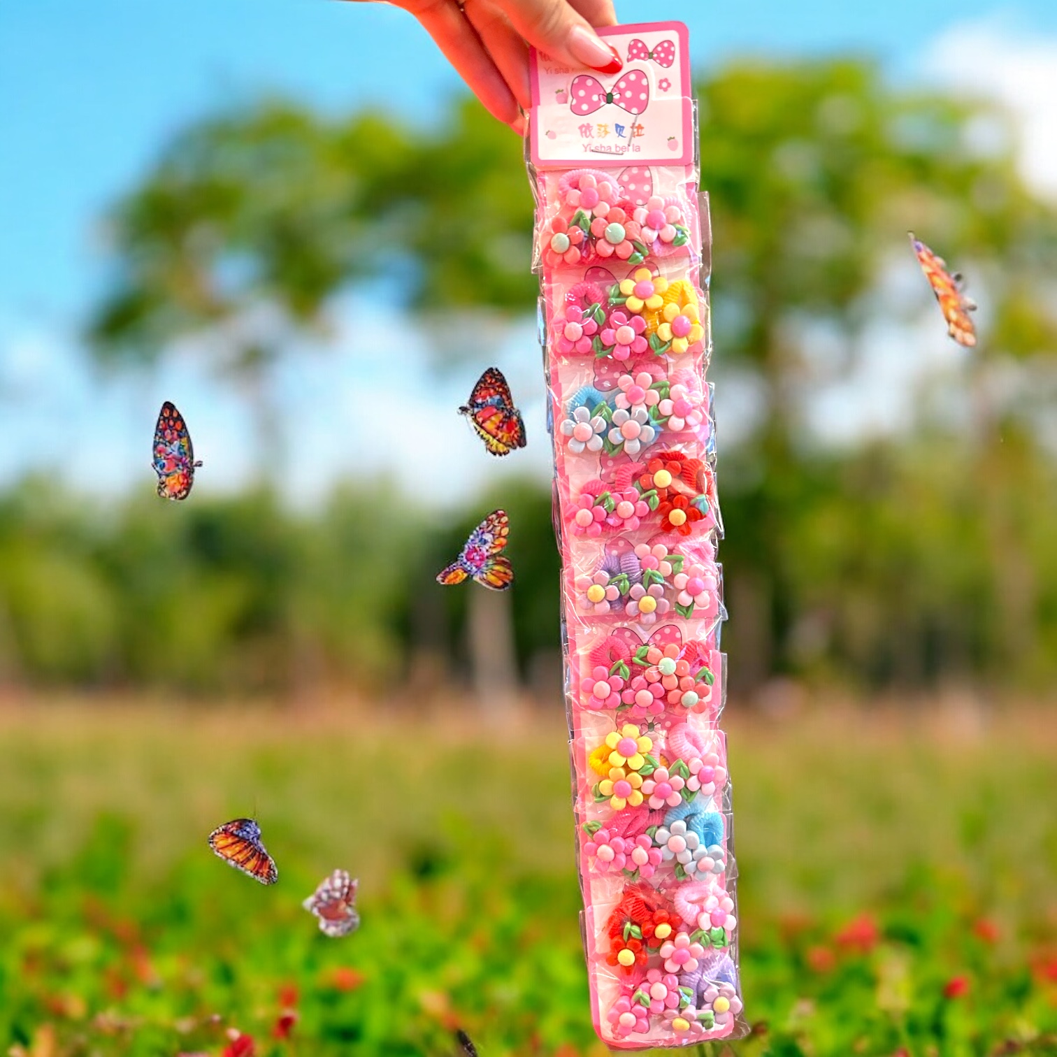 Set elastice par copii cu flori 3D colorate – ambalaj cu 10 pungute