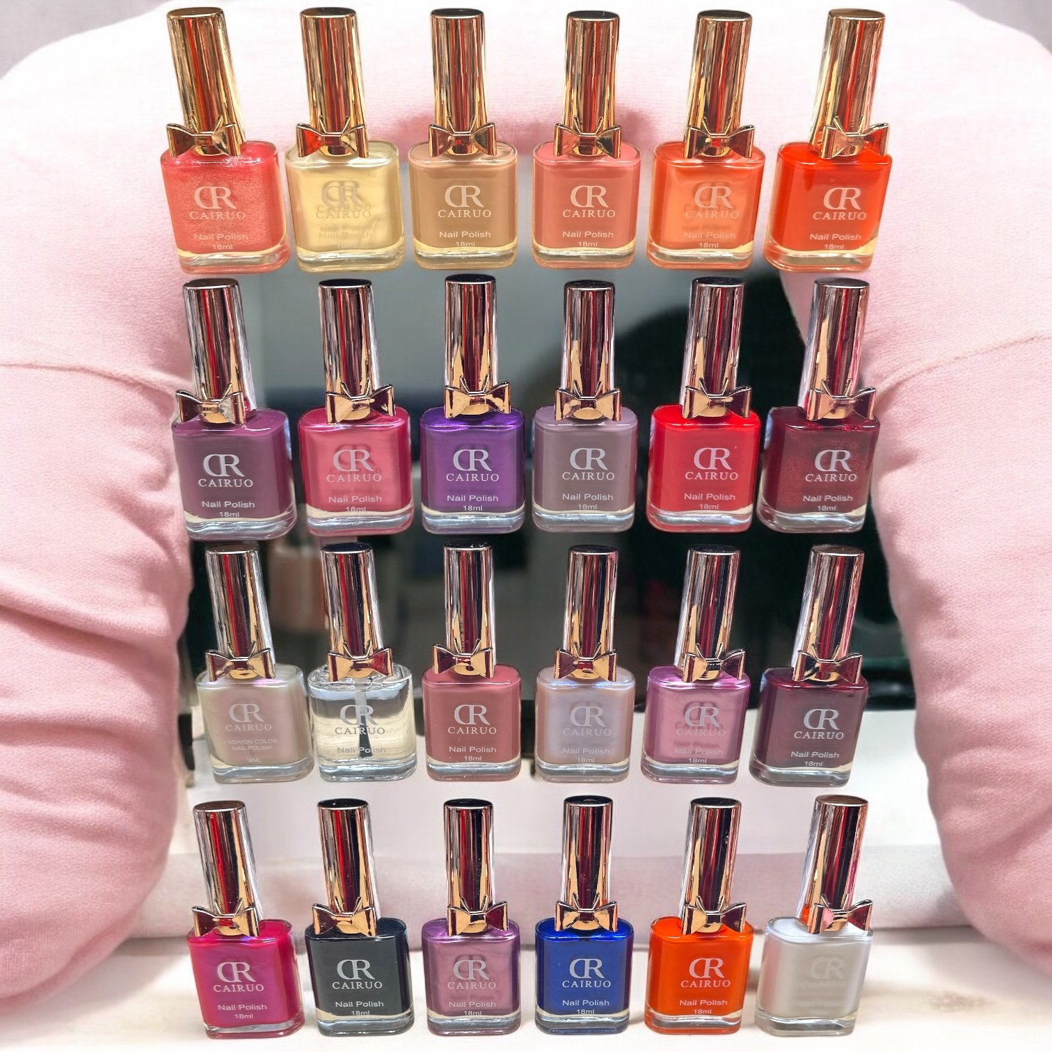 Formula rezistentă oferă acoperire uniformă dintr-o singură aplicare, cu uscare rapidă și durabilitate îndelungată. Capacul auriu și sticluța elegantă adaugă o notă premium perfectă pentru vânzare în saloane, magazine sau pentru revânzători.