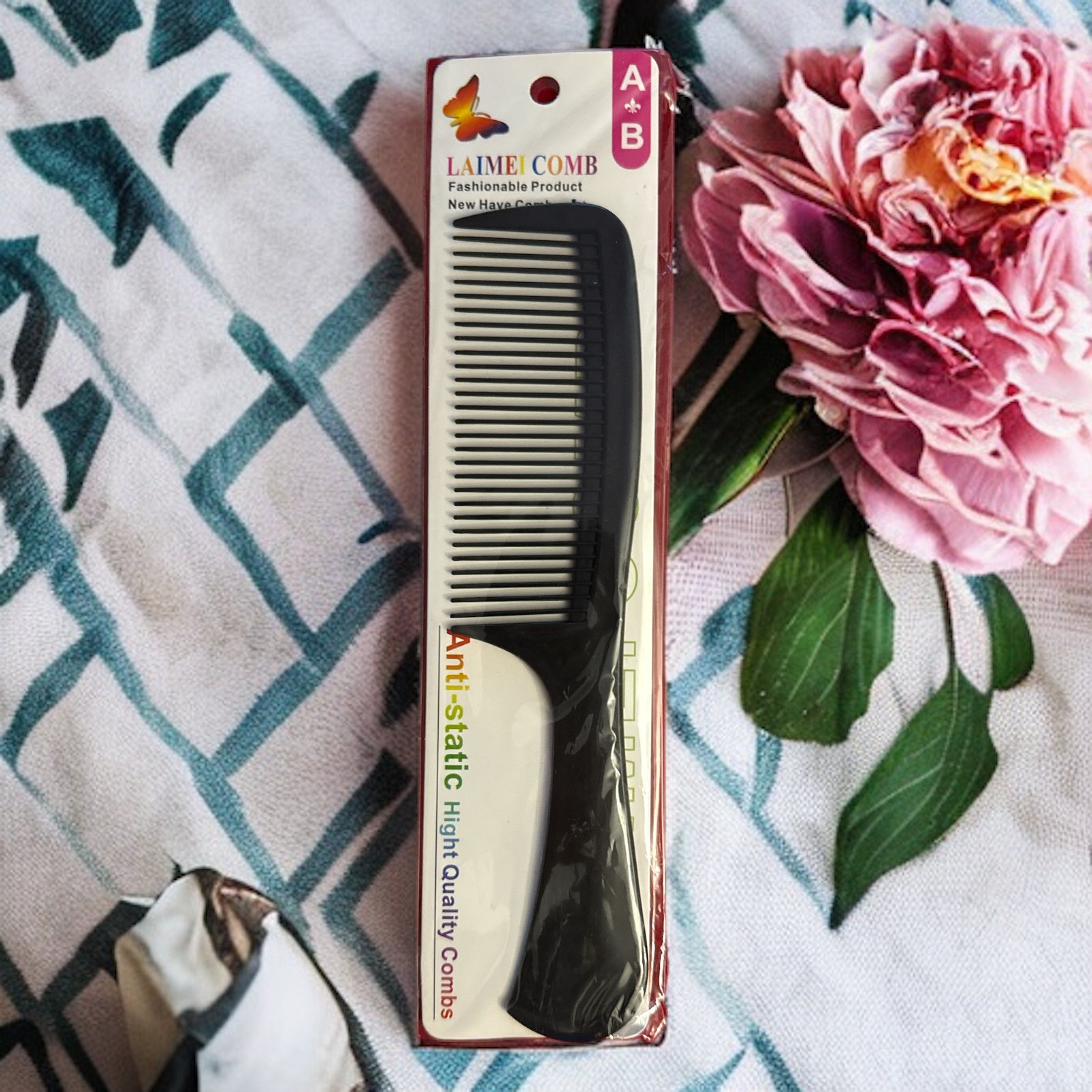 Un instrument versatil pentru îngrijirea părului, ideal pentru descurcarea firelor rebele și coafarea precisă. Acest pieptene este realizat din material rezistent, cu o structură ergonomică și dinți dubli care asigură o pieptănare eficientă fără a agresa scalpul.
