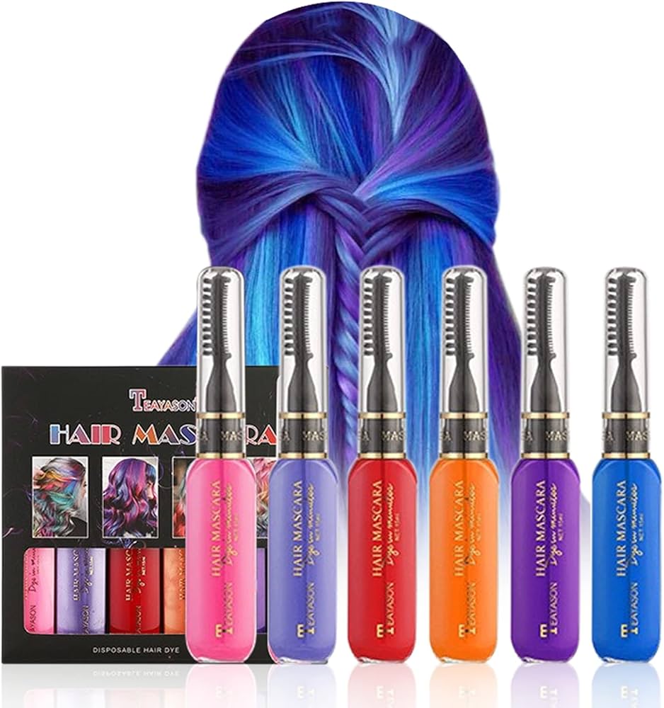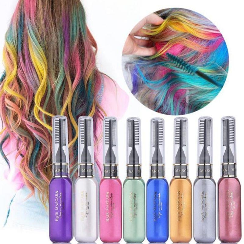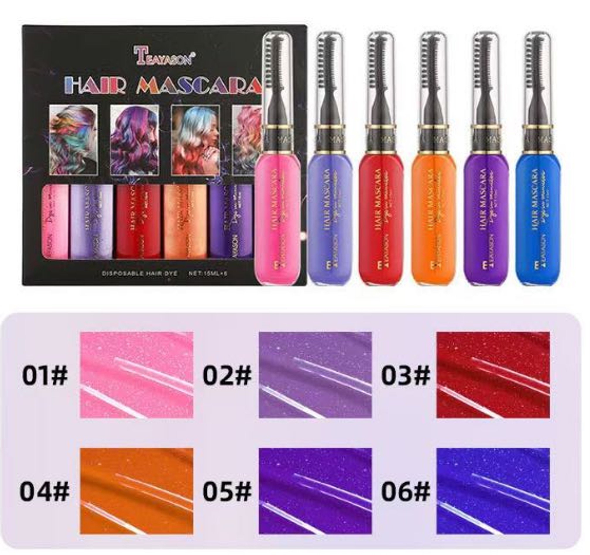 Rimel colorat pentru șuvițe – vopsea temporară de păr, 15 ml, 6 culori intense cu efect glitter