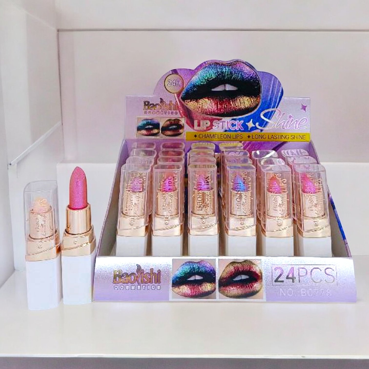 Ruj solid Baolishi Shine cod B0778 – Efect cameleon și strălucire intensă, set 24 bucăți en-gros
